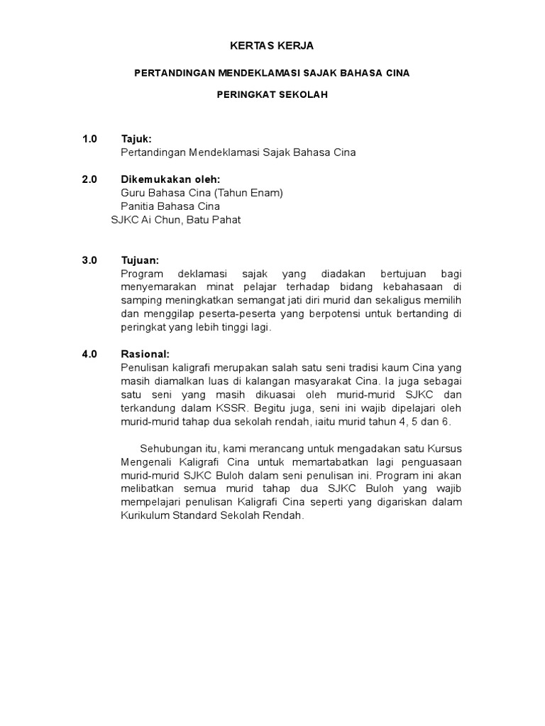 Kertas Kerja Pelaksanaan An Mendeklamasi Sajak 2010 Pdf